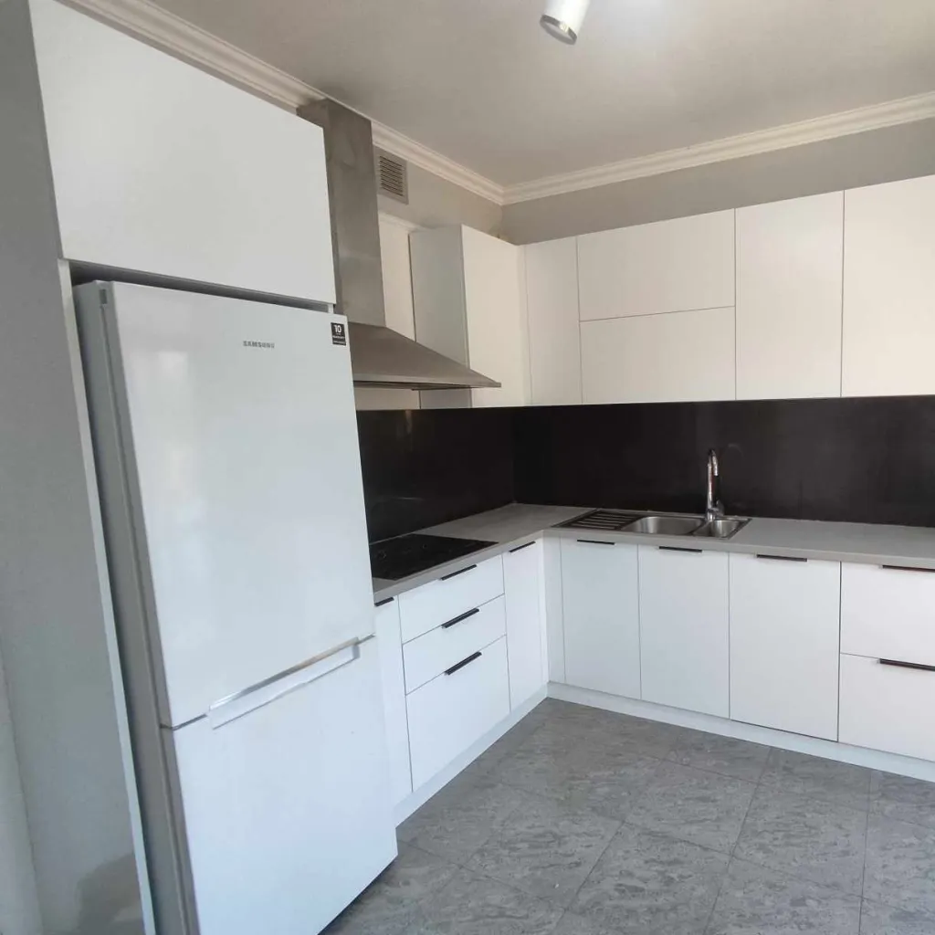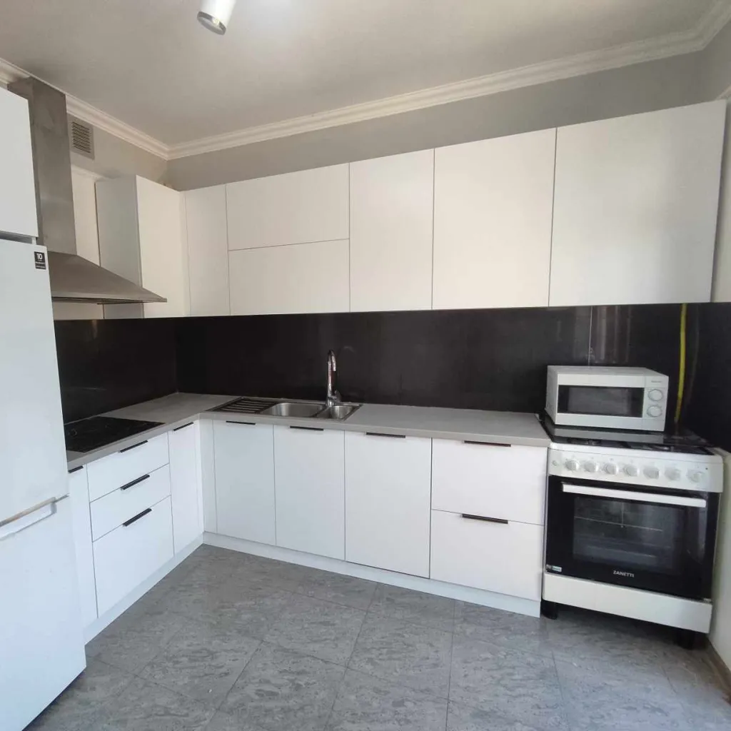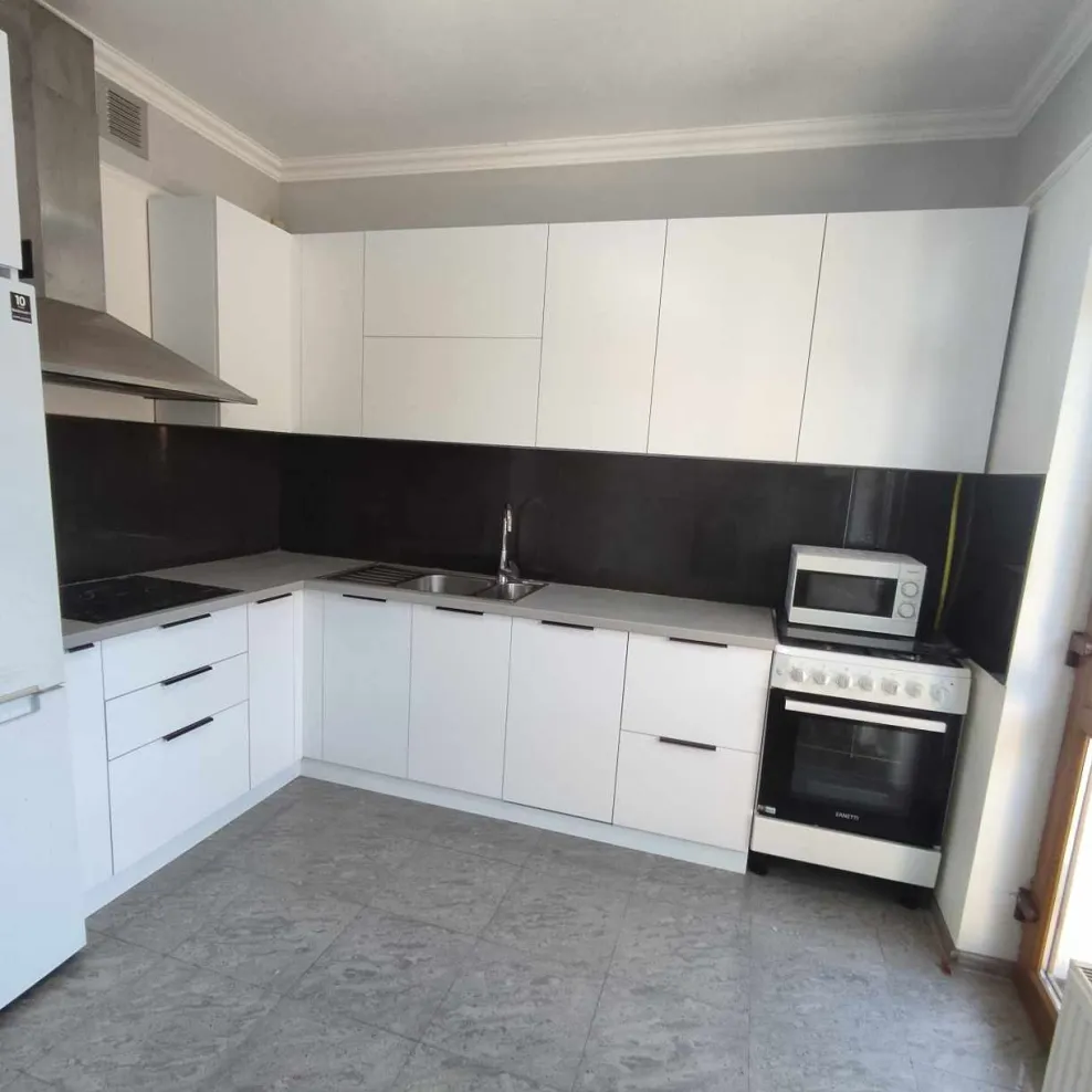Эта модель представляет собой идеальное решение для тех кто хочет кухню где каждый сантиметр используется с максимальной эффективностью. Дизайн основан на функциональном минимализме: белые фасады без выступающих ручек создают непрерывную поверхность, визуально увеличивающую пространство а черная защитная панель добавляет глубины и элегантности. Проект гармонично интегрирует стандартную бытовую технику. Светло-серый столешница плавно переходит между контрастными зонами, обеспечивая просторную и легко очищаемую рабочую поверхность. Разделение пространства продумано стратегически: нижние корпуса включают ящики различной глубины для быстрого доступа к кухонным принадлежностям, а подвесные корпуса, расположенные почти у самого потолка обеспечивают удивительный объем хранения для кухни в квартире. Это сбалансированное рабочее пространство где свет эффективно отражается, превращая приготовление пищи в приятное и расслабляющее занятие.