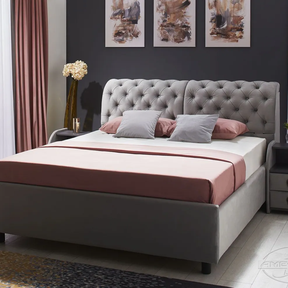 Acest dormitor aduce o notă clasică locuinței dumneavoastră. Nuanța de gri deschis adaugă profunzime și stil fiind ușor de integrat în orice ambient. Textura moale oferă confort sporit iar designul echilibrat face din acest pat o alegere excelentă pentru cei care apreciază rafinamentul discret, funcționalitatea și armonia cromatică într-un dormitor bine amenajat.