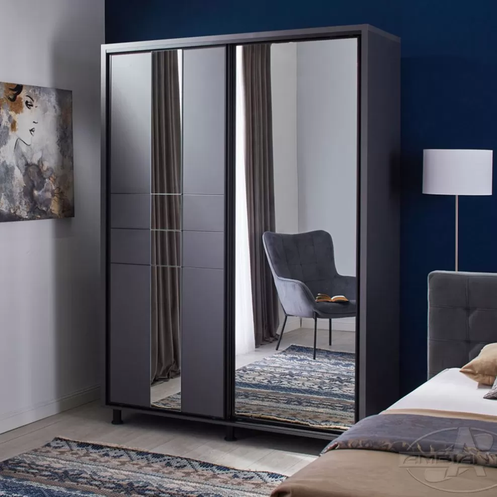 Шкаф Rio с раздвижными дверцами и зеркалом добавит элегантности вашей спальне. Его глубокий цвет создает современный акцент а просторное внутреннее пространство идеально подходит для идеальной организации. Большое зеркало усиливает свет а раздвижной механизм работает плавно и бесшумно. Это практичная и эстетичная вещь подходящая к любому современному интерьеру.